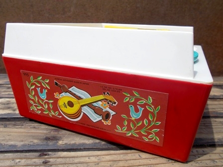 レコード盤を乗せてアームを落とすとアームないに仕込まれているオルゴールをレコードの凸が弾き、曲が流れます♪