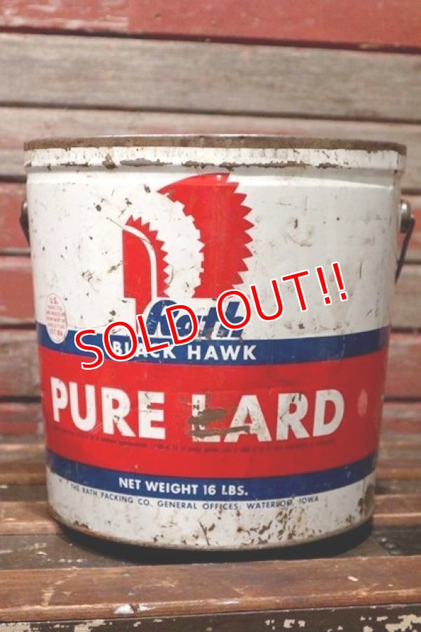 1950年代頃のRath BLACK HAWK PURE LARDバケツ型缶です