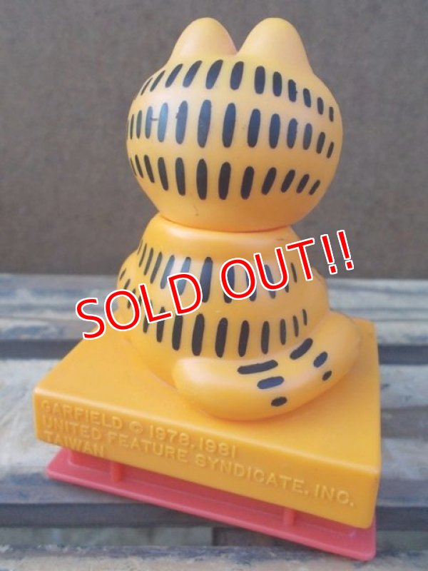 台座部分にバネが入っていて、頭を押すとガーフィールド特有の歯を見せる表情に変わる仕組みになっています☆