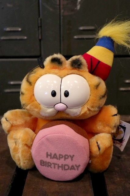 ct-180514-36 Garfield / DAKIN 1980's Plush Doll "Happy Birthday"