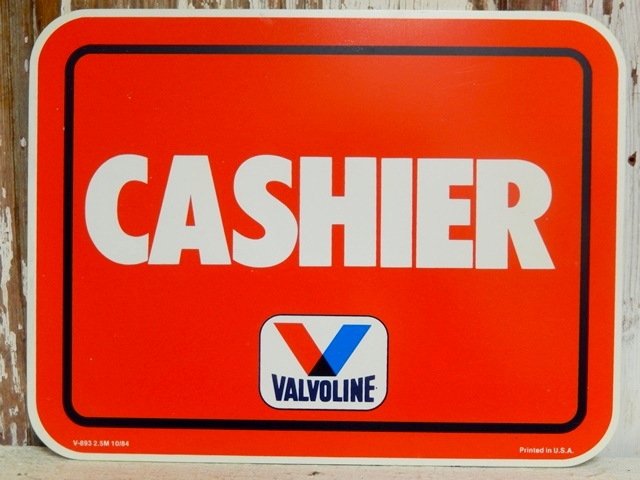 dp-150602-02 Valvoline / 1984 Plastic Sign "CASHIER"