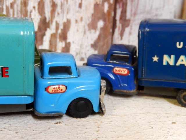 U.S.ARMY、U.S.NAVY、U.S.AIR FORCEの日本製ブリキトラック3台セットです!