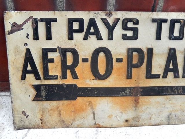 飛行場内にあったものでしょうか、文字だけのシンプルなデザインですが、経年によるメタルの風合いや錆びなどもアジがあります。
