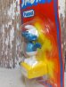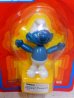 土台の底の板を押すとスマーフがくにゃりと動くおもちゃです☆