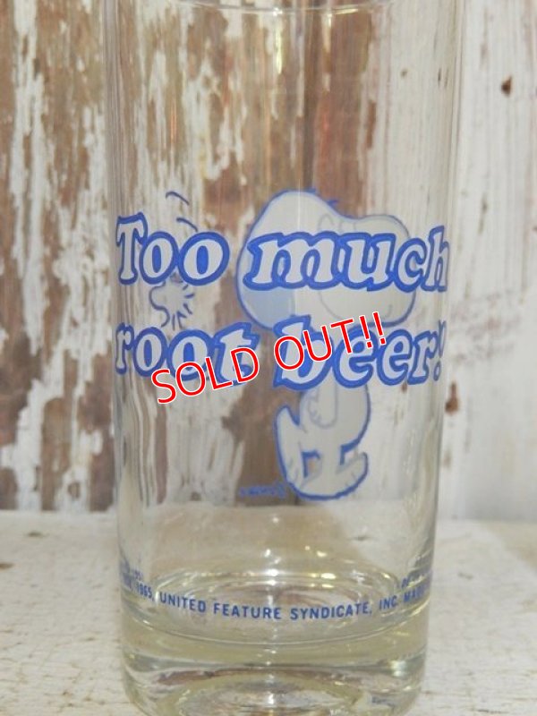 gs-160901-03 Snoopy / 70's "Too much root beer!" glass