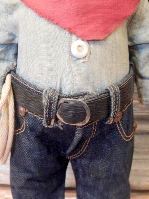 ダンガリーシャツ、デニム、ベルト、帽子、バンダナに加え、右腰にあるロープもオリジナルです