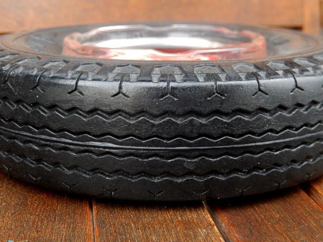 ガラス灰皿の周りにあるのは本物のタイヤと同じ素材の物です。