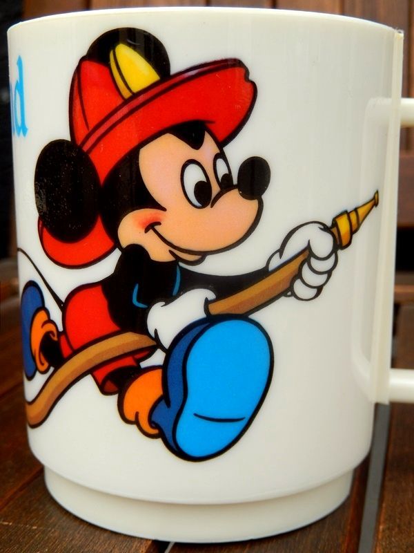 ct-170511-25 Mickey Mouse & Goofy / Disneyland 1970's Firefighter Plastic Mug