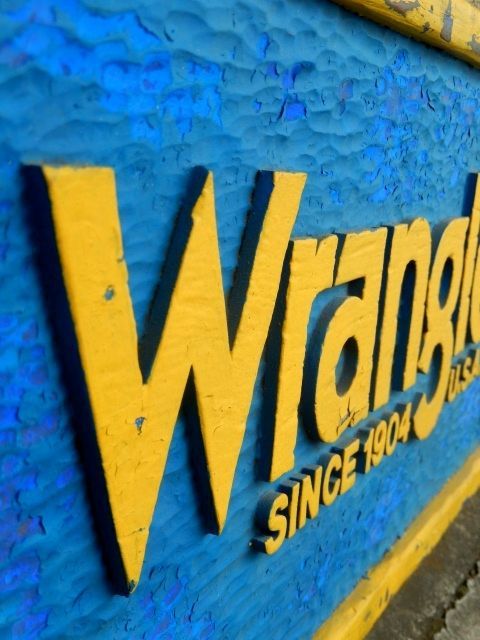リーバイス、リーと並ぶアメリカ三大ジーンズブランドのひとつWrangler(ラングラー)のストアディスプレイサインです!