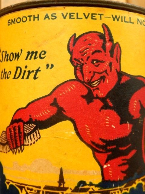 紙ラベルが渋い1品。大きなレッドデビルが右手にブラシ、左手にクレンザーを持っているデザインです
