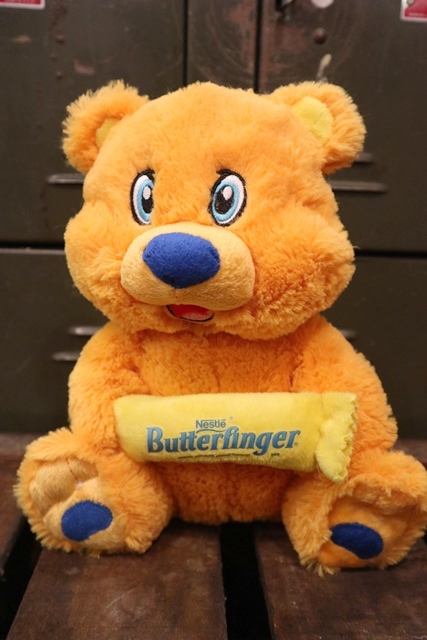 Nestlé(ネスレ)のバターフィンガーを手に持っているクマのぬいぐるみです!