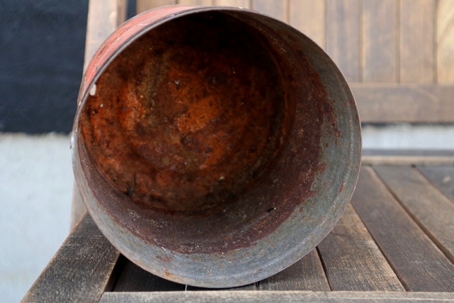 全体的に小傷、薄汚れ、錆び、側面と底面に1箇所づつ腐食による穴が開いています