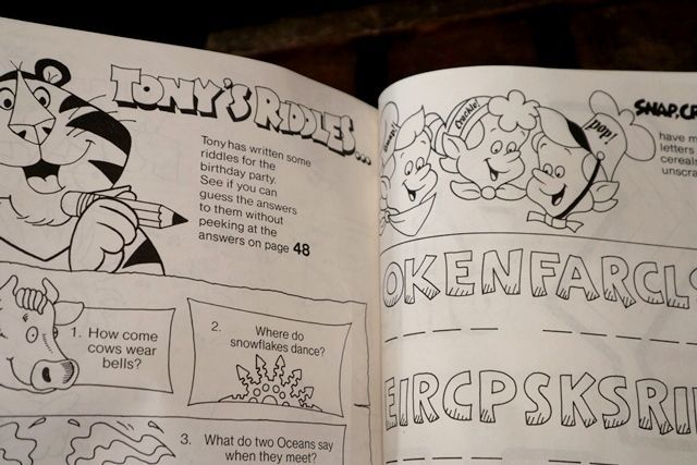 ケロッグのシリアルキャラクターたちの塗り絵、迷路、クイズなどが全48ページ☆