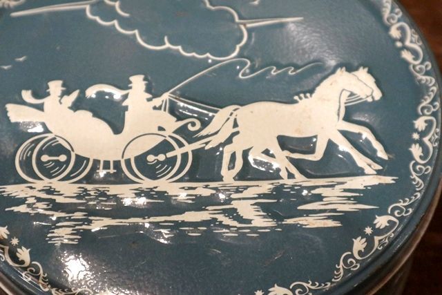 何とも言えないきれいなブルーに馬車のシルエットが白抜きで入るデザイン