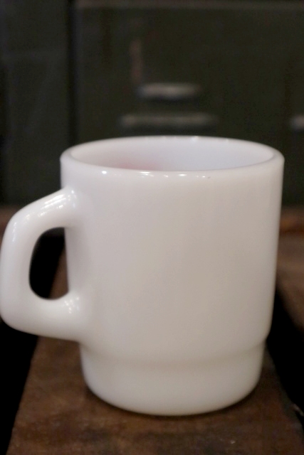 アメリカのスリフトショップ「サルベーションアーミー」のターモクリサ製のミルクガラスマグです