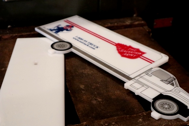 アメリカのスリフトショップ「サルベーションアーミー」のトラック型のプレートディスプレーです