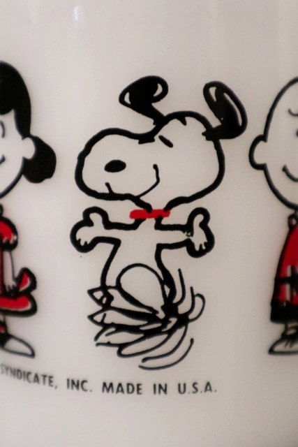 1960年代頃のスヌーピー(ピーナッツの仲間たち)のフェデラル製ミルクガラスマグです!