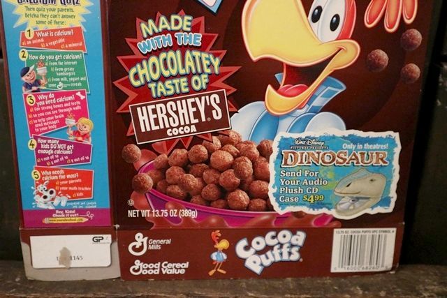 2000年のゼネラルミルズのシリアル「Cocoa Puffs」の空箱です!