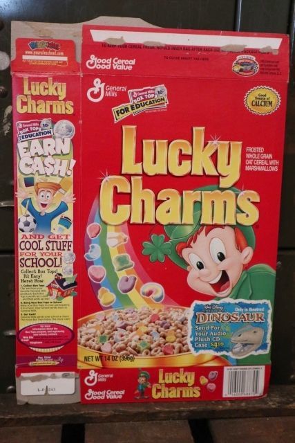 2000年のゼネラルミルズのシリアル「Lucky Charms」の空箱です!