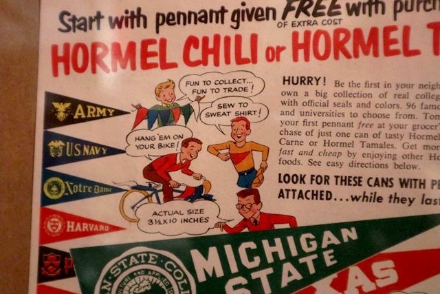 当時缶詰を買うとカレッジペナントがノベルティとして貰えたようです