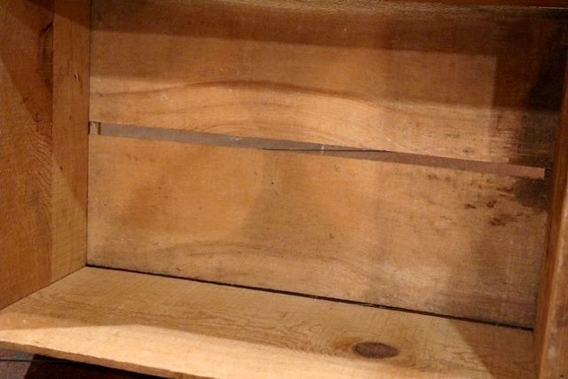果物の輸送に使われていたもので、1箇所に紙ラベルが貼られています