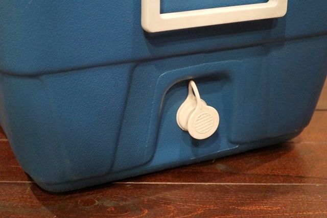 側面の水抜き栓有り、ハードプラスチック製で蓋は椅子のように座れます