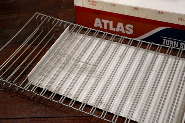 自動車などのランプが収納されていたもので、蓋を開けるとワイヤーラックになっています