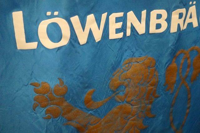 ドイツの有名ビールで鮮やかなブルーに獅子のマークが入ります