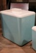 ターコイズブルーにゴールドのプリント、蓋のホワイトの切り替えしも可愛いです