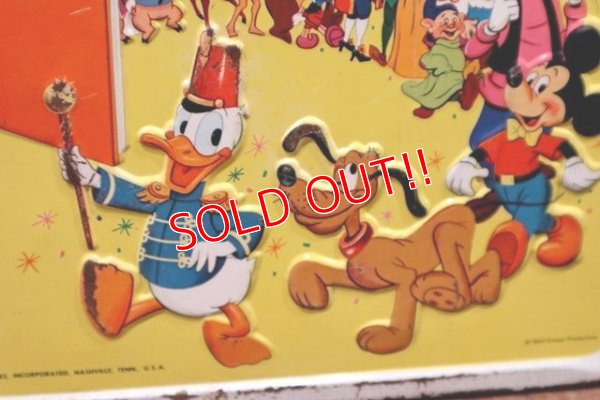 ドナルドダックを先頭にプルート、ミッキーマウス、グーフィー、小人、白雪姫、ピーターパン、フック船長、ピノキオ、バルー、モーグリ、バンビ、子ブタとディズニーキャラクターが勢ぞろいのデザインです☆