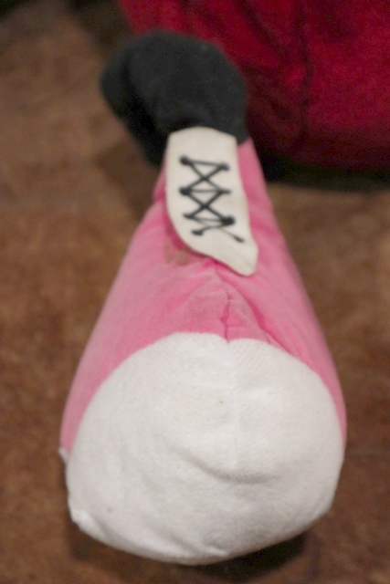 足の靴紐のパーツが少し剥がれており、接着剤に跡が見えます
