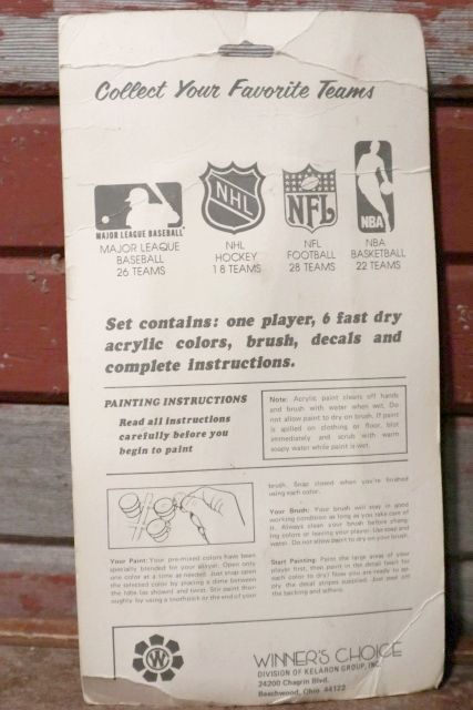 無着色の人形と塗料、筆、ステッカーが封入されており、ボルチモア・コルツカラーに完成させることができるようです