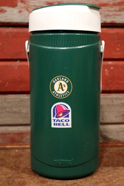 MLBのオークランド・アスレチックスとアメリカのファストフード「タコベル」のロゴマークが入ったサーモス社製のジャグです