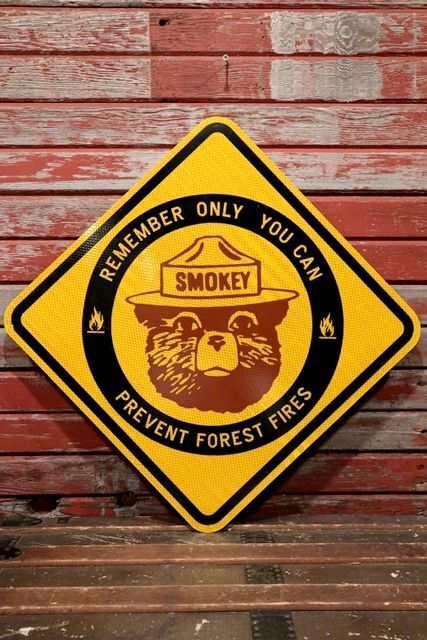 スモーキーベアのスチール製ロードサインです