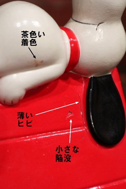 ※スヌーピーのボディに茶色い着色、耳付近に薄いヒビ、小さな陥没あり(最後の画像参照)