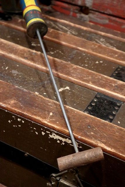 缶容器に液体が入り、取っ手をピストンすることで筒の先から噴霧される仕組みです