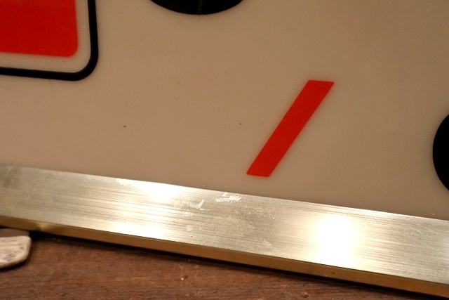 その他全体的に小傷、薄汚れ、上部吊り下げ用のチェーンが真ん中付近で切れ、サイン部分が色焼けでクリーム色になっています
