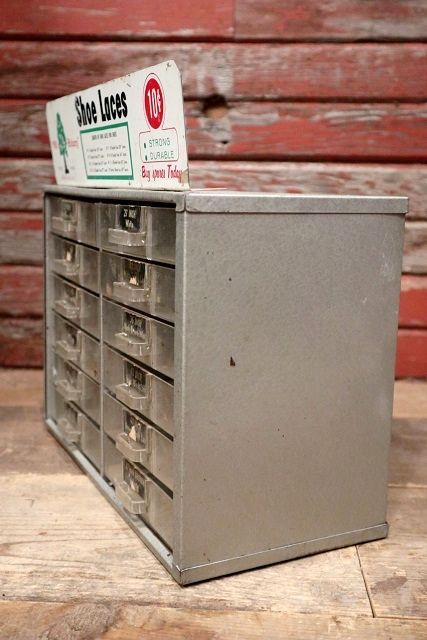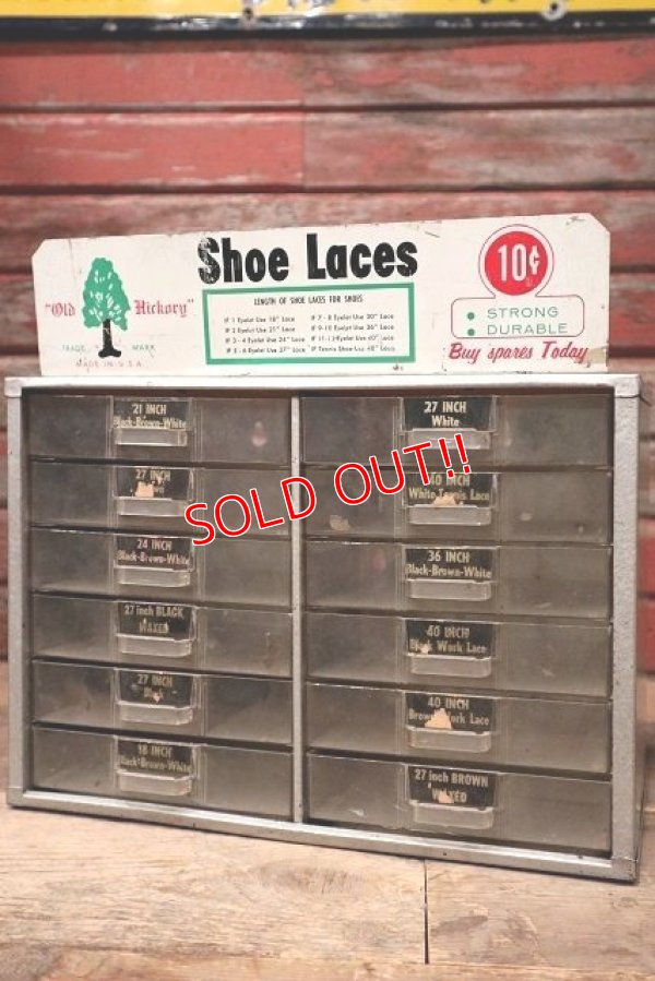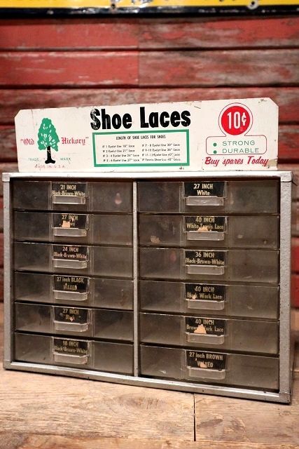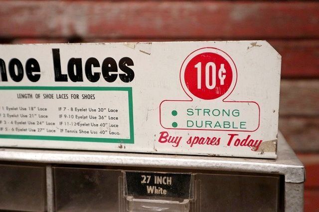 当時店頭で靴紐が収納・陳列されていた小型の什器になります
