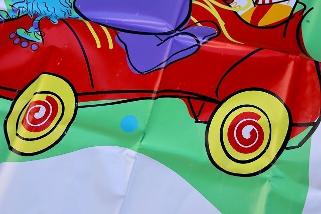 厚手のビニール地で、プレイランドなどキッズエリアに掲げられていた物と推測します