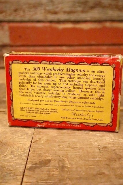 Weatherbyの30口径ライフル用の弾丸が入っていた空箱になります