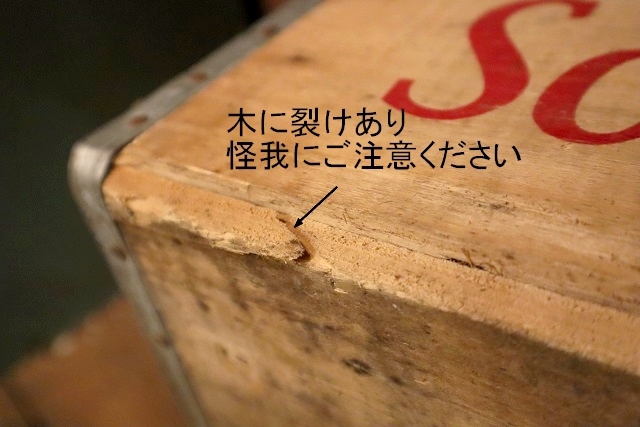 全体的に小傷、底面に埃汚れ、補強金具に歪みや錆び、数か所ホッチキスの芯が刺さっています