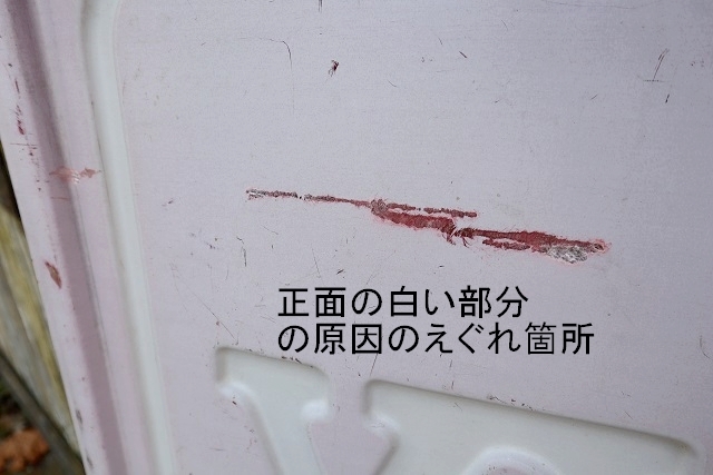 右上付近に白い筋がありますが、塗装剥げやテープの剥がし忘れではなく、背面の傷によるものです(貫通はしていません)