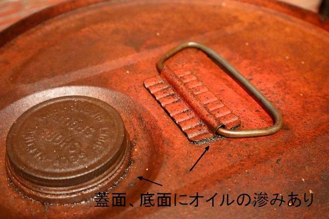 中は空ですが、上部、底面にオイルの滲みがありますので、素手で触らないようご注意ください