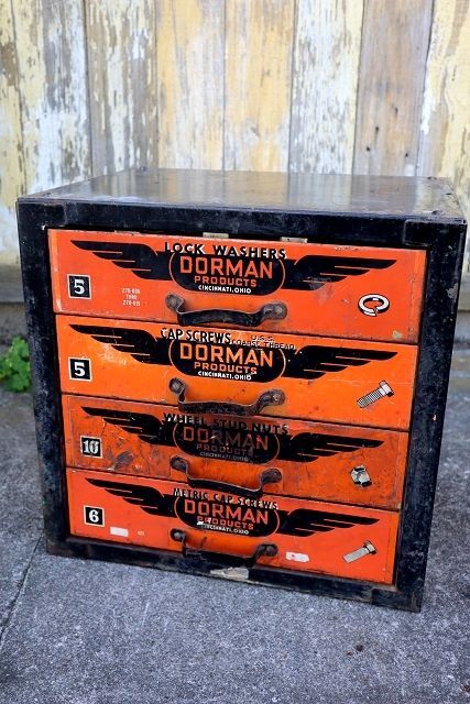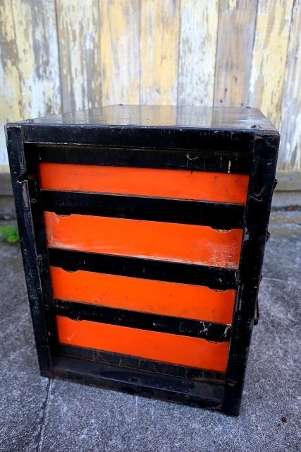 当時細かいオートパーツが収納されていた物で引き出し4段タイプで、非常に重量のある(25kg前後)アイテムになります