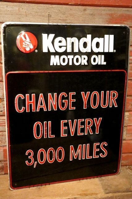 dp-231012-19 Kendall MOTOR OIL / 1980's Metal Sign "CHANGE YOUR OIL EVERY 3,000 MILES"