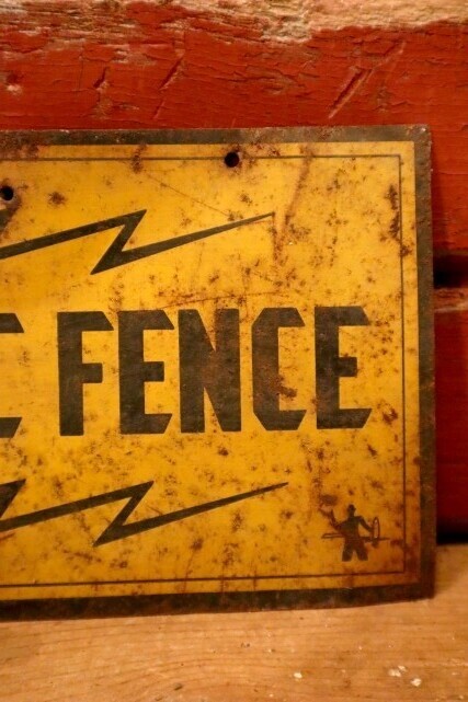 フェンスに電流が流れていることを知らせるためのメタルサインです