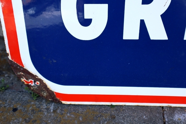 アメリカ最大規模のバス会社GREYHOUND(グレイハウンド)の琺瑯製サインです