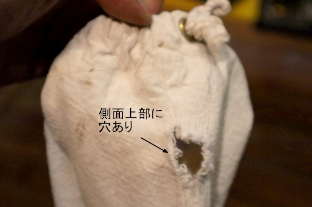 画像4枚目矢印部分にオレンジの塗料の付着あり、側面に一部破れあり(最後の画像参照)