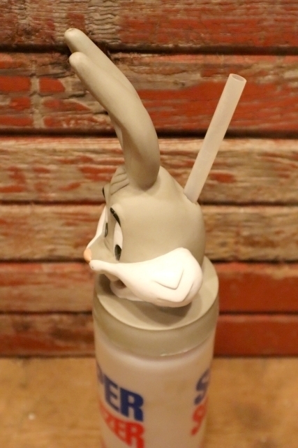 ラバー製のバッグスバニーのヘッドが蓋になっておりストローも刺さっています
