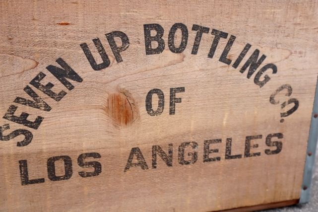 面積の広い面(前後)にSEVEN UP BOTTLING CO. OF LOS ANGELSの文字が入り、取っ手側(側面)に7upのロゴマークが入ります